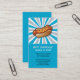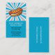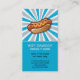 A hot dog in a bun with a squirt of mustard is ready to go! It sits on a rough sky blue and grey burst as if to state the main speciality of the business. Great for a hot dog stand or a fast food place. Available in alternate colours with matching products.