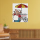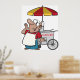 A hot dog vendor with his hot dog cart. This design looks really effective on these Poster