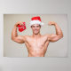 Hot Guy Flexes Biceops Santa Hat Sexy Shirtless Poster
