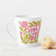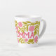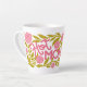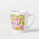 This is a vibrant and floral "Hot Momma" Mother's Day Mug features a wrap-around design with a bold, hand-painted writing, leaves and flowers. This mug is covered in a lush pattern of bright carnations and green foliage.