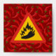 Triangle warning sign with a pepper and flame silhouette.