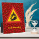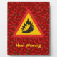 Triangle warning sign with a pepper and flame silhouette. Seamless pattern background. Custom text.
