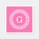 Hot Pink2 Wht Greek Key Rnd Frame Initial Monogram Napkin