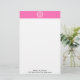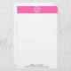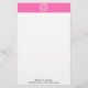 Hot Pink2 Wht Greek Key Rnd Frame Initial Monogram Stationery