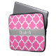 Hot Pink2 Wht Moroccan #5 Dark Grey Name Monogram Laptop Sleeve