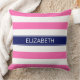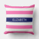 Hot Pink #2 Wht Horiz Stripe Navy Name Monogram Cushion