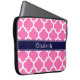 Hot Pink 2 Wht Moroccan #5 Navy Blue Name Monogram Laptop Sleeve