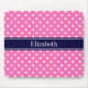 Hot Pink #2 Wht Polka Dots Navy Blue Name Monogram Mouse Mat