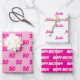 HOT PINK 50th Happy Birthday Custom Name Wrapping Paper Sheet
