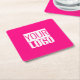 Square Paper Coaster in hot pink solid colour background and a bold cover logo . Personalise it now . Modern and trendy design by Alma Wad .It comes in different shapes .