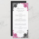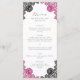 Elegant hot pink and black wedding menu featuring elegant floral lace.