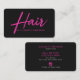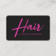 Hot Pink and Black Retro Script Hairstylist Business Card