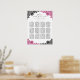 Hot pink and black wedding seating chart for 12 tables featuring elegant floral lace.