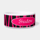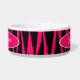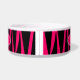 Give your pet a modern edge with this cool black and hot pink zebra striped food dish! Pet dish features a black and hot pink zebra stripe pattern all around with a hot pink oval area with white trim on each side. Inside each oval is text in white font to be customised with your pets name.