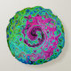Hot Pink and Blue Groovy Abstract Retro Swirl Round Cushion