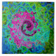 Hot Pink and Blue Groovy Abstract Retro Swirl Tile