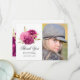 Hot Pink and Gold Floral Quinceañera Photo Thank You Card