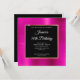The decorative background digital art graphic image features a faux bright magenta hot pink foil with a black square shape and gold brushed metal foil border that creates a solid colour your personalised invite information.