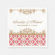 Elegant, stylish and beautiful french Moroccan tile inspired paper napkins with a repeating hot pink fuchsia and gold geometric quatrefoil pattern design and gold hued french baroque style floral flourish border. Our upscale and luxe look custom napkins can be personalised with the names of the bride and groom or celebrating couple and are perfect for a formal Moroccan, Indian inspired, Arabian Nights or Aladdin themed wedding, couples shower, anniversary party or engagement celebration. Design © Chrissy H. Studios, LLC. All Rights Reserved