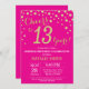 Hot Pink and Gold Surprise 13th Birthday Diamond Invitation