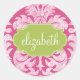 Hot Pink and Lime Girly Damask Pattern Classic Round Sticker