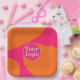 Hot Pink and Orange Abstract Pattern with Logo Paper Plate
