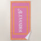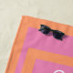 Cool beach towel in sunny summer colours. Hot pink background with vibrant orange rectangles with space for your name or monogram. Great for a gift!
