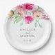 Hot Pink and Peach Watercolor Flowers Wedding Paper Plate
