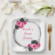 Beautiful sweet sixteen birthday party plate with a hot pink and silver faux glitter frame with floral flower arrangements. Perfect for a sweet sixteen birthday party. The words can be changed to suit your own details or requirements