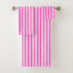 Hot pink and white candy stripes bath towel set