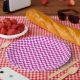 A simple hot pink and white chequered pattern on these wonderful paper plates.