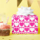 A wrapping paper built with a hot pink and white chequered pattern with hearts in large size. Customise the white background colour among several options.