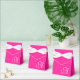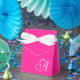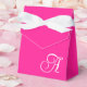 Create your own girly monogrammed hot pink and white tent style favour box with white ribbons for her birthday party.