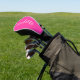 Hot pink and white modern girly calligraphy name on a golf head cover.
