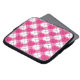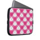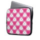 This laptop sleeve features an argyle pattern of hot pink and white hearts on a light pink background.