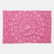 This bold mandala design bursts with energy, featuring a vivid hot pink background accented by intricate white linework. Layers of repeating floral and geometric motifs radiate outward from the centre, forming a dazzling display of symmetry and rhythm. The crisp contrast between pink and white enhances the ornamental details, while the circular structure creates a sense of movement and harmony. With its vibrant colour palette and finely balanced pattern, this design captures both playful charm and timeless elegance.