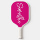 Hot Pink and White Modern Brush Script Pickleball Paddle