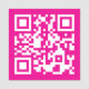 A modern QR code against a hot pink solid colour background.