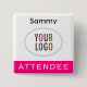 Hot Pink Attendee Name Badge Logo Square Pinback