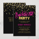 Throwing a bachelorette party? Need ideas? Get these modern and trendy custom templates so you can DIY easily. Hot pink with faux gold confetti with black and faux gold foil background. Affordable but not cheap looking. Personalise these invites for your next party. Back of card has also text so you can add more wording in case special instructions such as a weekend bachelorette!