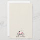 Stationery paper featuring an illustration of a hot pink bicycle at bottom. Personalise with your name under bike.