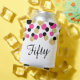 Glamourous Hot Pink / Fuchsia, Black and Gold Glitter Confetti Dots Can Holder perfect for any occasion. Add three lines of text on the back and Fifty is on the Front. However you can change the wording to your own choice. Fun for a bachelorette party too! If you would like any design changes please email paula@labellerue.com before placing your order so a new one can be created for you.