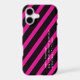 A short, personalised message of encouragement in Python programming language and stripes provide a tech, fashion forward design while protecting your phone. The design's background consists of hot pink and black diagonal stripes. The custom message is in white text. The font, colour, and location of the text may be changed by using the Edit Design option.