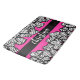 Hot pink black and white zebra pattern heart name bath mat
