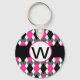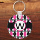 Hot Pink & Black Argyle Monogram Keychain "W"
