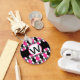 Monogram Keychain with Hot Pink & Black Argyle Design
