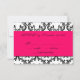 Hot Pink Black Damask Wedding Invitation RSVP Card. Customise with your information.