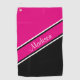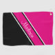 Hot Pink Black Diagonal Stripe Script Name Golf Towel