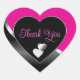 Hot Pink Black Hearts with Wavy Silver Thank You Heart Sticker