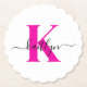 Hot Pink Black Initial Name Monogrammed Paper Coaster
